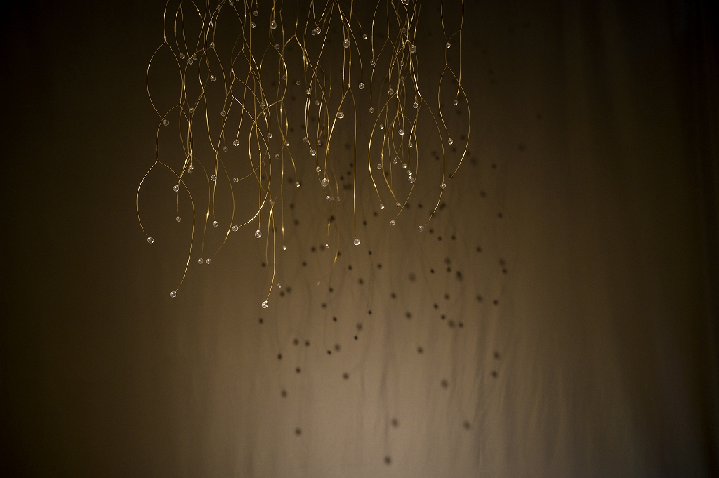 失敗したり割れたりで 長い間に溜まっていたガラスを再利用 雫形で作ったら 渦巻きのようでもあり 風